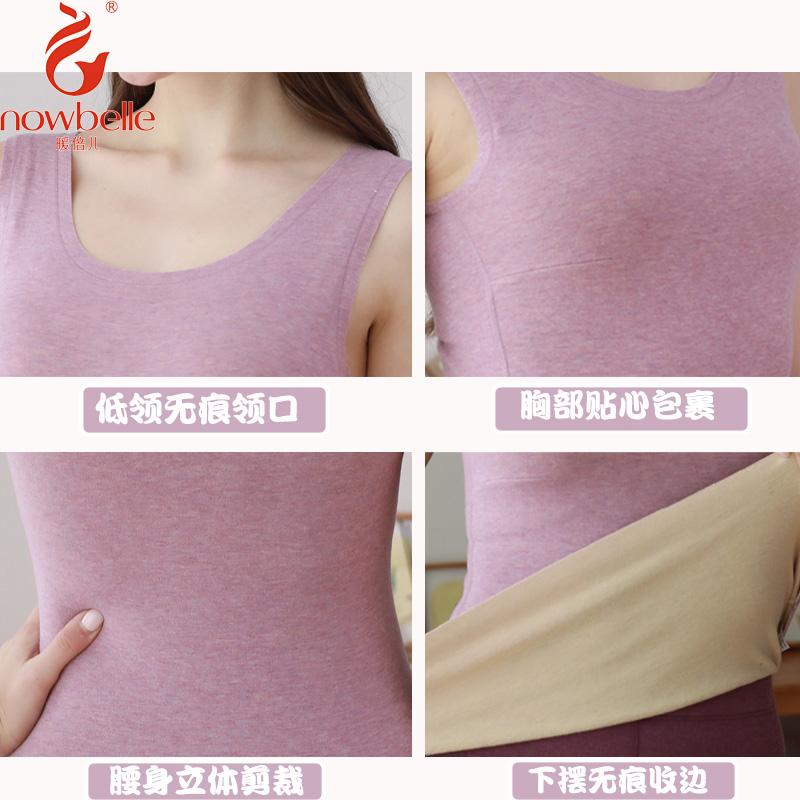 暖倍儿发热无痕女背心德绒磨绒蚕丝打底圆领秋冬上衣贴身内穿磨毛