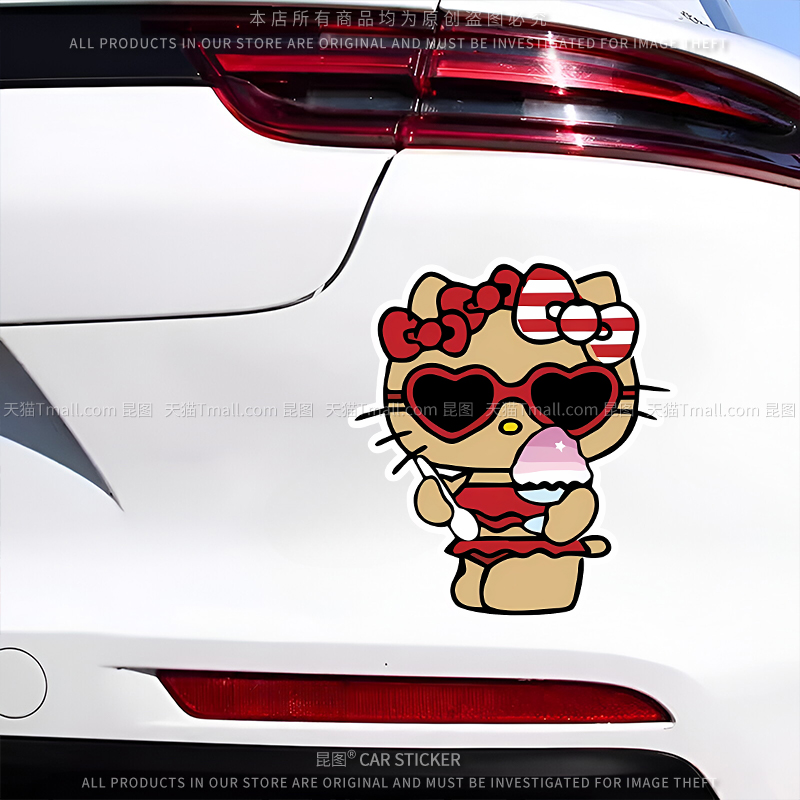 黑皮KT猫卡通电动车贴汽车个性 饰行李箱贴 趣味侧窗车身遮挡划痕装