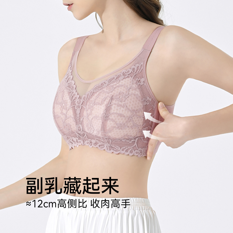 朵凡妮全罩杯抹胸内衣女大胸显小薄款 调整型文胸 收副乳防下垂大码