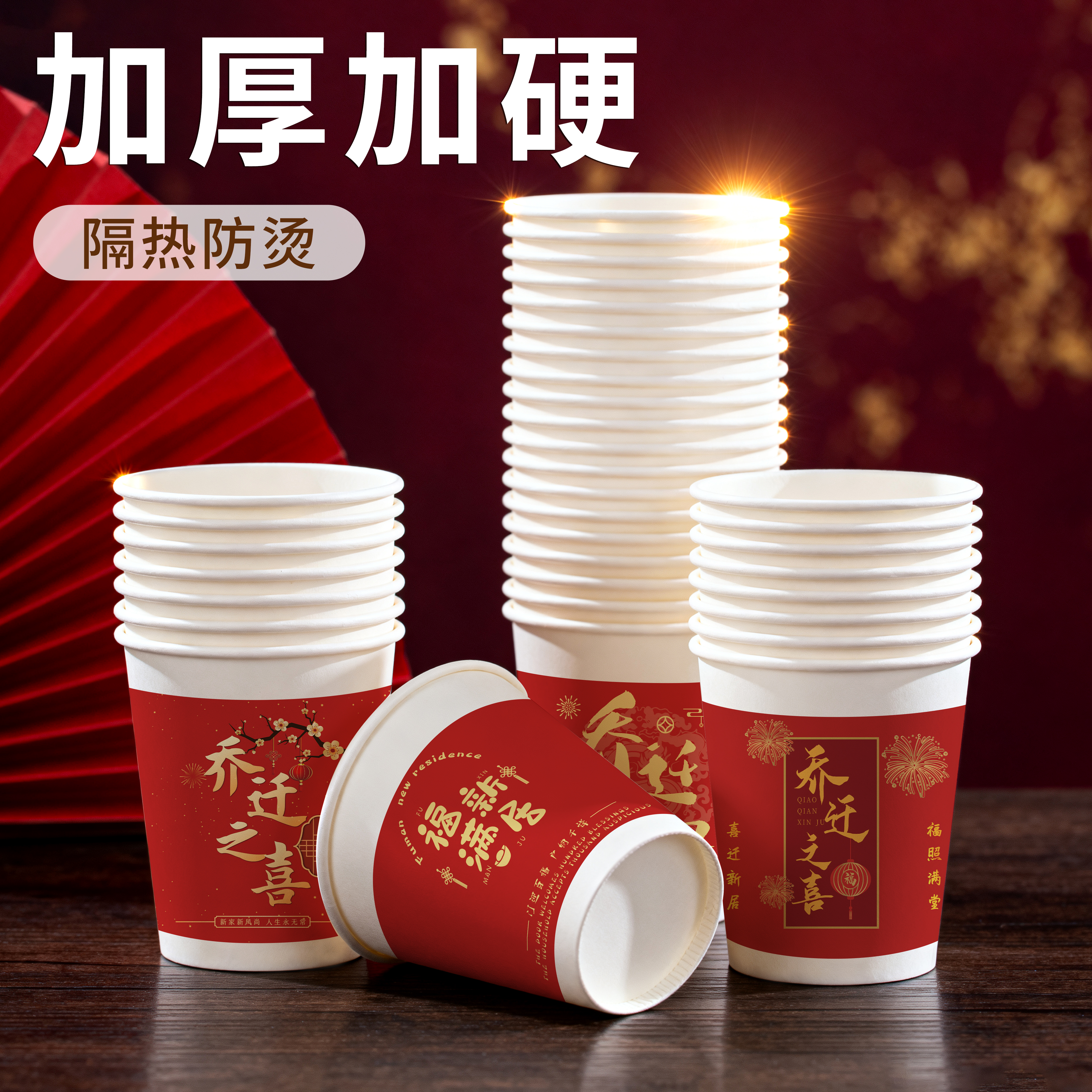 一次性纸杯杯子福字加厚批发结婚喜庆红色水杯家用婚庆食品级加硬