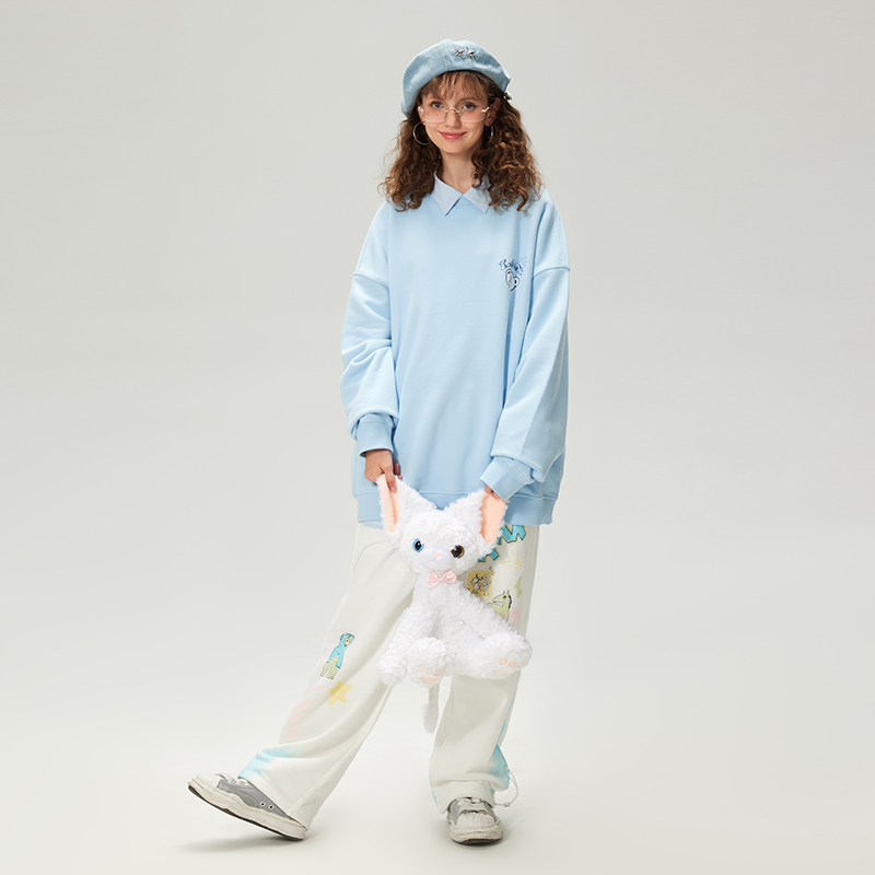 口袋复古美式 妖精 印花圆领女2025新款 秋季 上衣 长袖 搭子卫衣