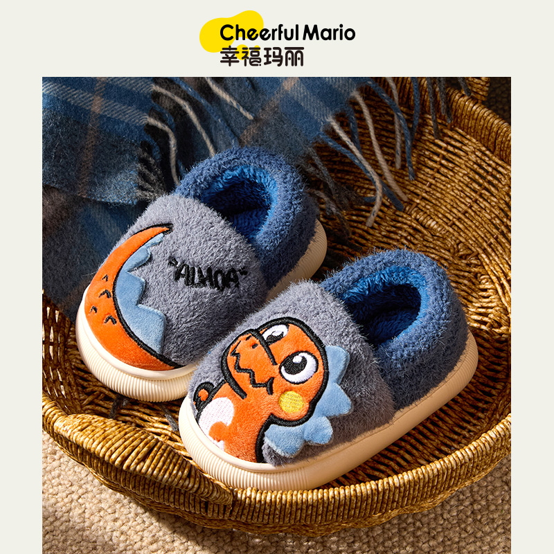 宝宝棉鞋 恐龙儿童棉拖鞋 毛毛拖鞋 室内男孩小童家居鞋 包跟男童冬季