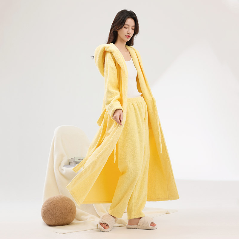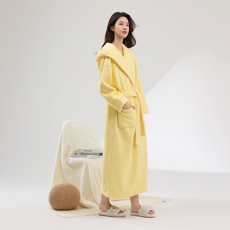 半边绒睡袍女士2025秋冬款 连帽浴袍家居服 加绒珊瑚绒睡衣加厚长款