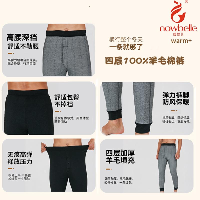 弹力东北保暖内穿过冬可机洗 四层加厚高腰修身 暖倍儿羊毛棉裤 男士