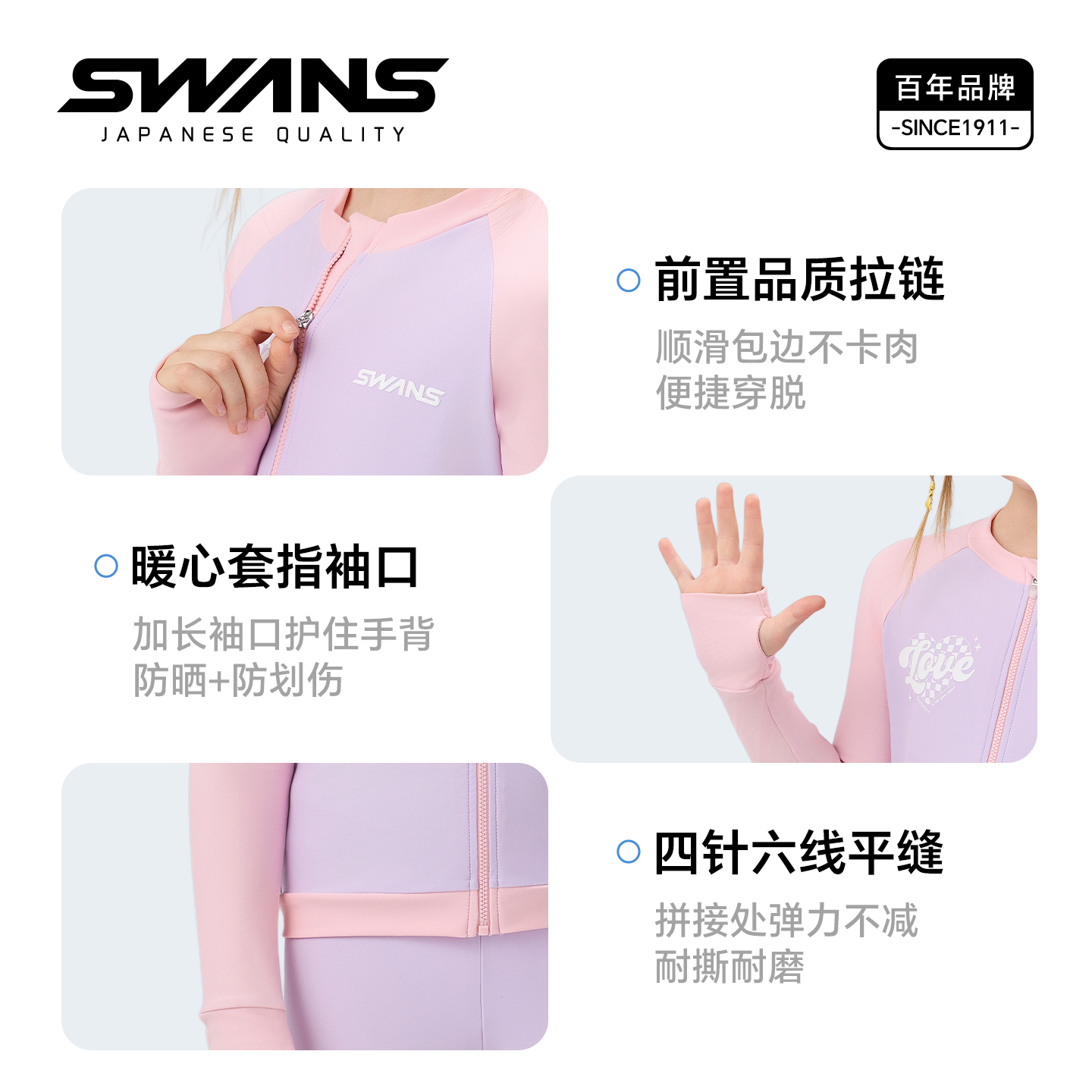 swans儿童泳衣女童分体速干2025新款 中大童专业训练泡温泉游泳衣