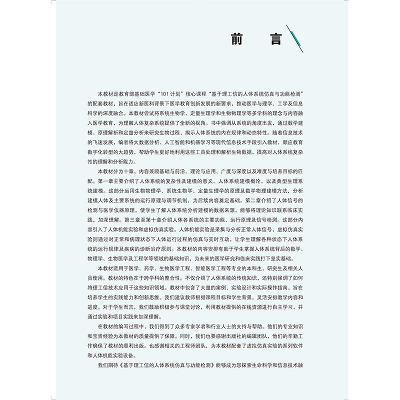 主编 教育部基础医学101计划核心教材 高兴亚 王慷慨 社9787565931574 基于理工信 北京大学医学出版 人体系统仿真与功能检测