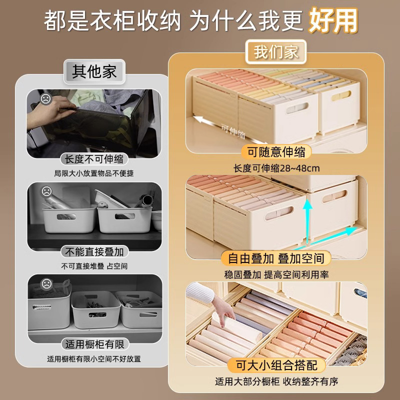 衣服裤 分层收纳神器整理箱 子收纳盒分格衣物衣柜收纳箱家用牛仔裤