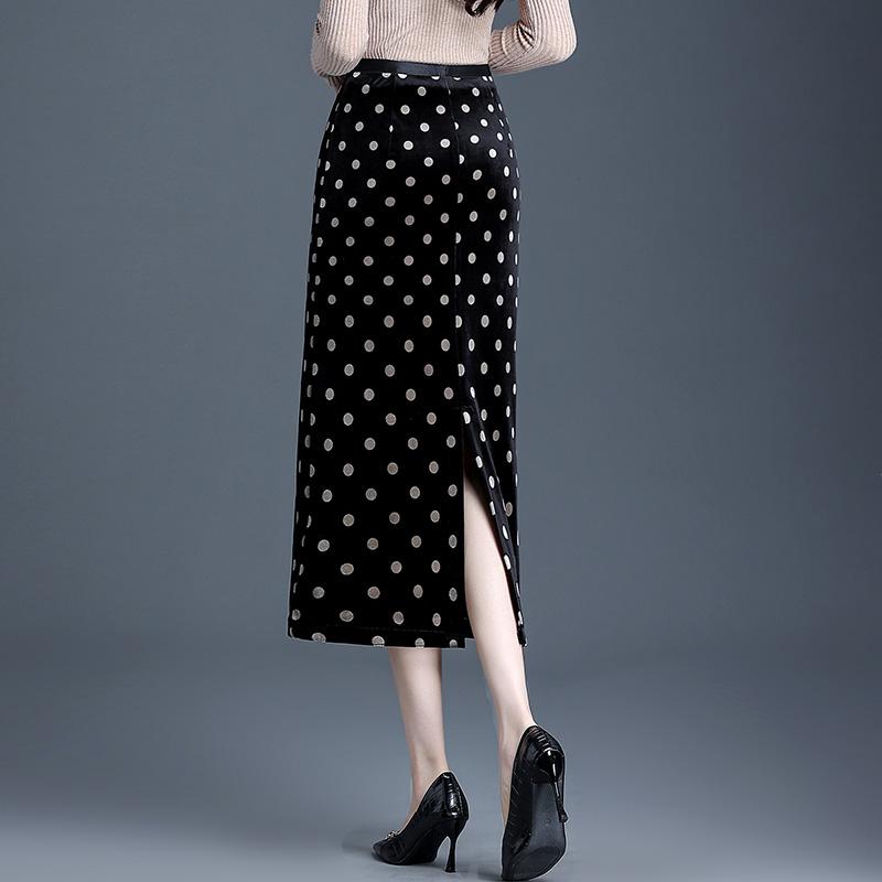 波点半身裙女2025年秋冬新款 复古气质直筒裙高腰显瘦一步裙 中长款