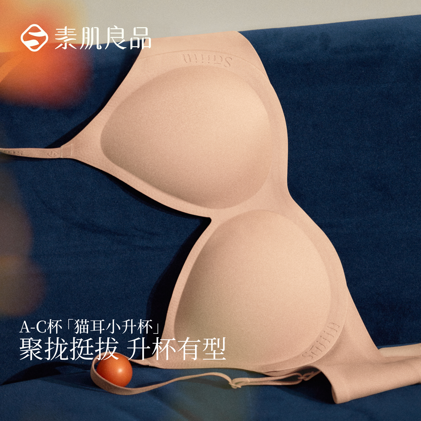 素肌良品猫耳小升杯内衣女聚拢小胸显大无钢圈薄款 美背无痕文胸罩
