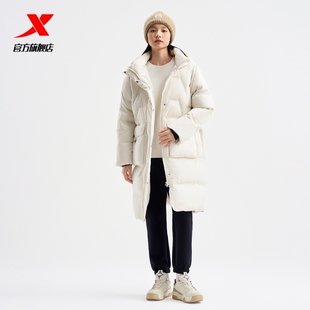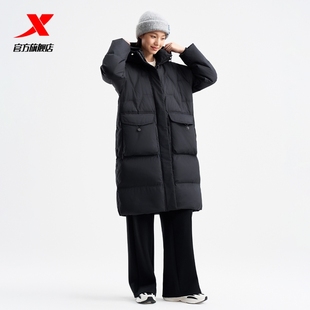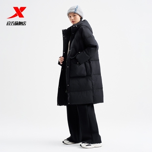加绒加厚防风保暖外套976428640191 秋冬新款 特步中长款 羽绒服女款