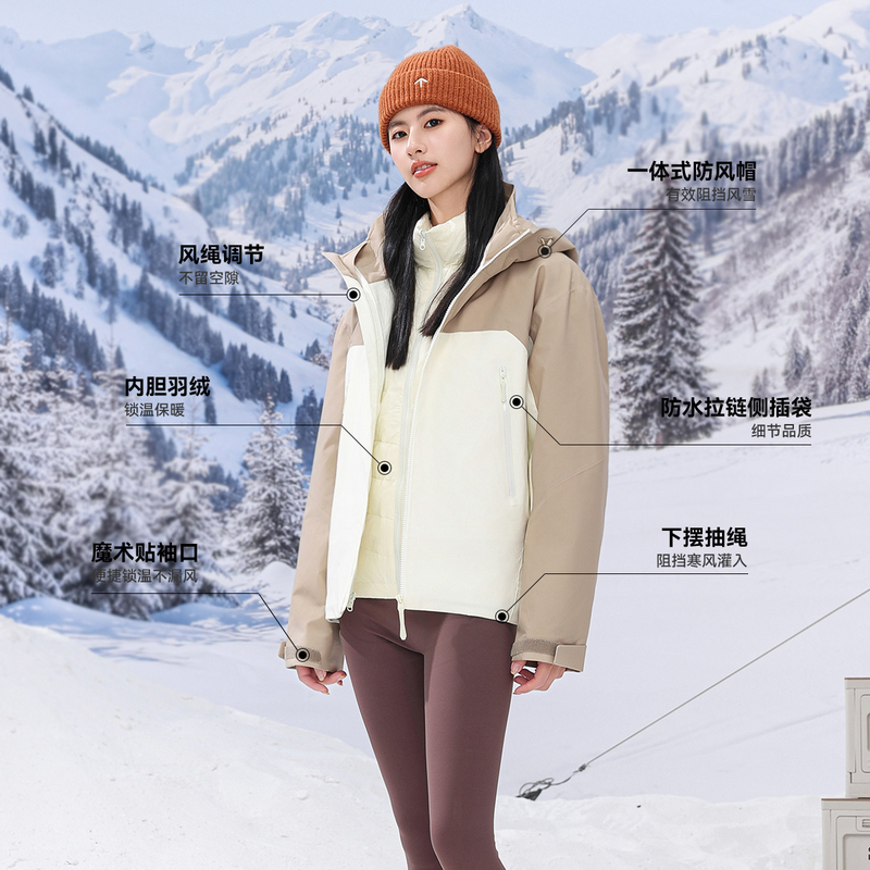 撞色羽绒服女2025秋冬新品 鸭鸭时尚 连帽保暖外套J 小雪花系列