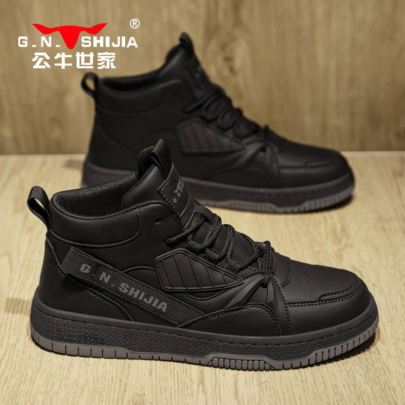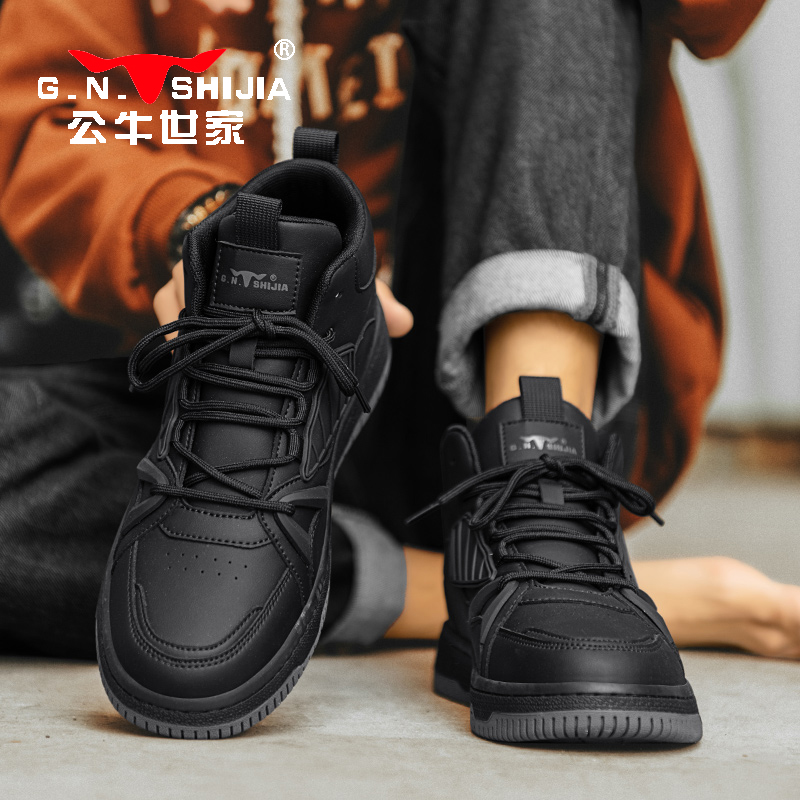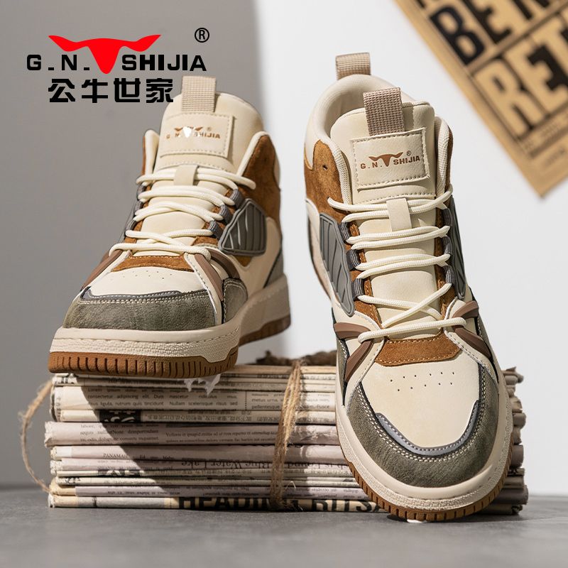 子男鞋 潮流复古高帮休闲皮鞋 春秋中帮板鞋 软皮韩版 正品 公牛世家鞋