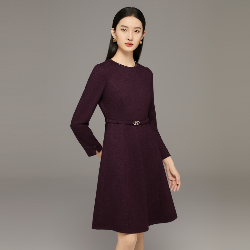 NAERSI娜尔思盈动闪纱优雅羊毛连衣裙蓬松透气修身 型A字裙 显瘦版