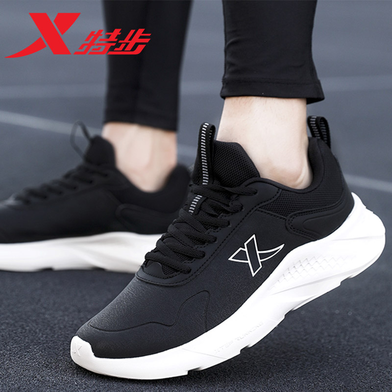 黑色皮面防水跑步鞋 运动鞋 男新款 子官方正品 男 软底休闲鞋 特步男鞋