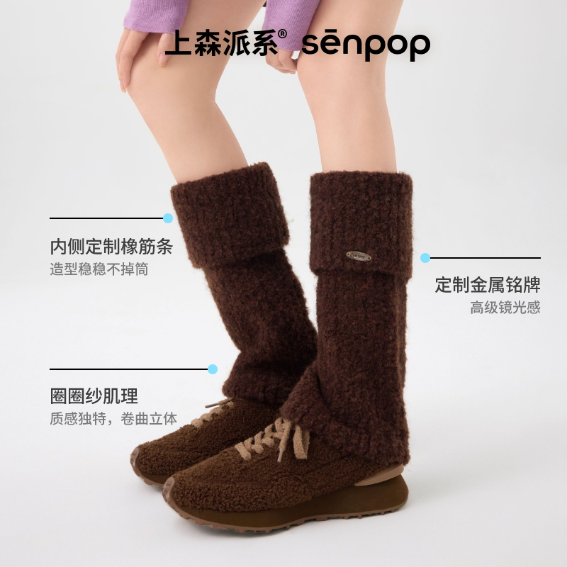 上森袜套堆堆袜秋冬羊毛腿套保暖灰色瑜伽裤 护腿套 袜子毛绒勃肯鞋