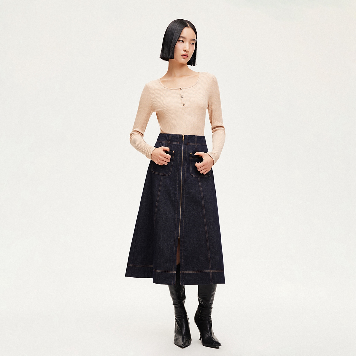 高腰A字水洗显瘦牛仔裙时尚 新款 324337031 Moda半身裙24秋季 Vero