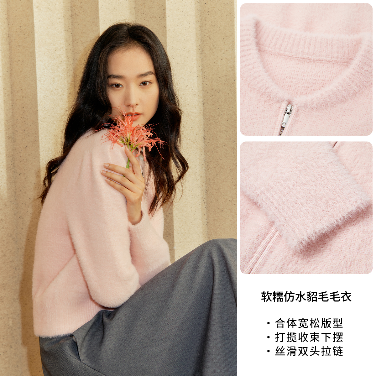 双头拉链 女软糯亲肤舒适开衫 FIVE PLUS仿水貂毛针织衫
