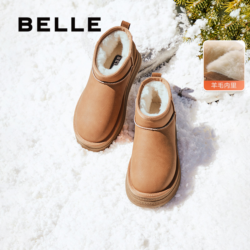 短靴B2169D 羊毛毛棉鞋 百丽豹纹加绒保暖厚底羊毛雪地靴冬季 新款