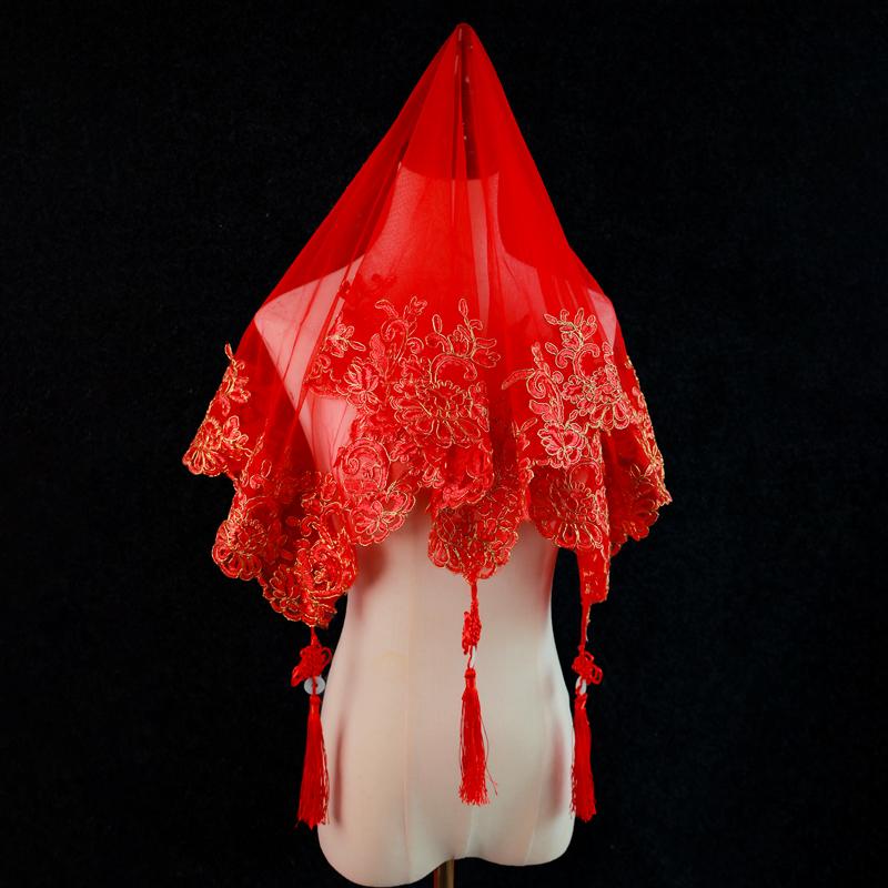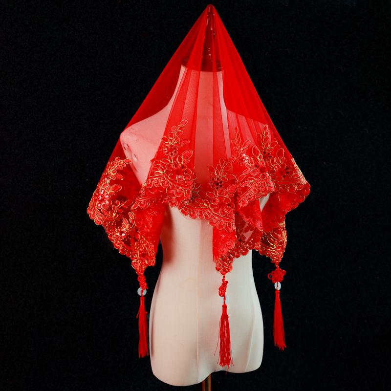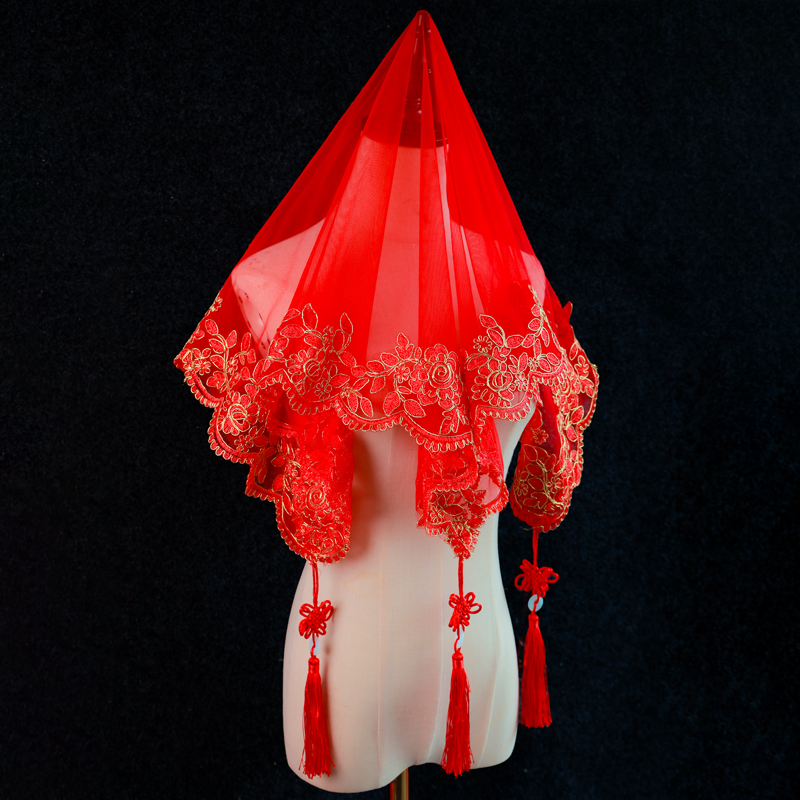 2025新款 秀禾凤冠霞披结婚红头纱 高级出嫁红盖头半透明新娘纱中式