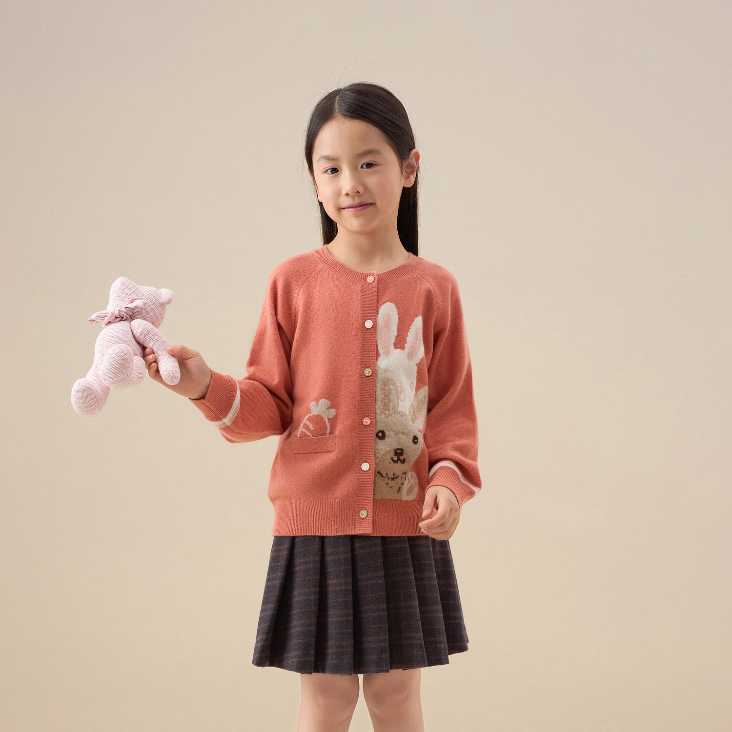 TeenieWeenie小熊女装 软外套 毛衣秋舒适学院风绵羊毛绞花针织开衫