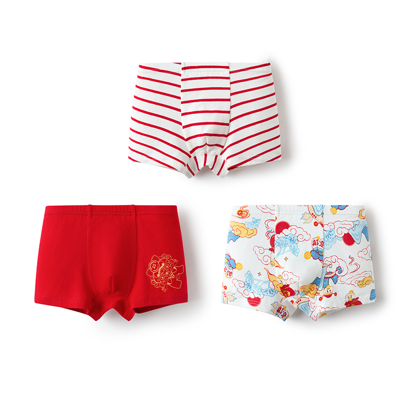 新款 巴拉巴拉男童内裤 2025秋季 儿童本命年红色四角短裤 宝宝平角裤