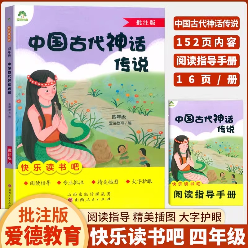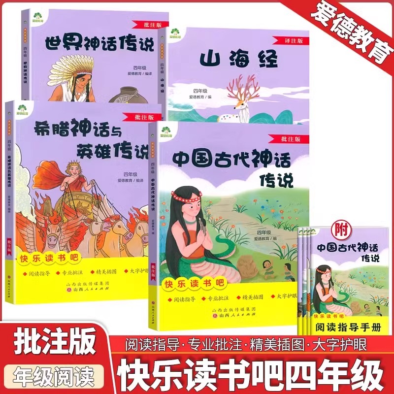 12岁课外阅读物图书批注版 中国古代世界希腊神话与英雄传说山海经小学生8 带阅读指导练习册 快乐读书吧四年级上册 爱德教育