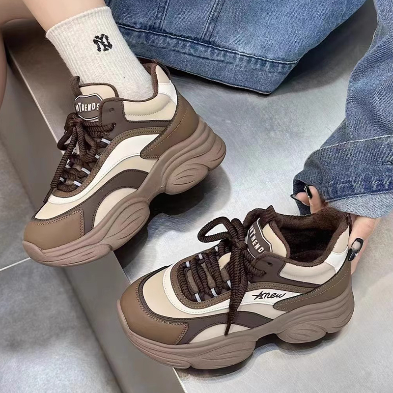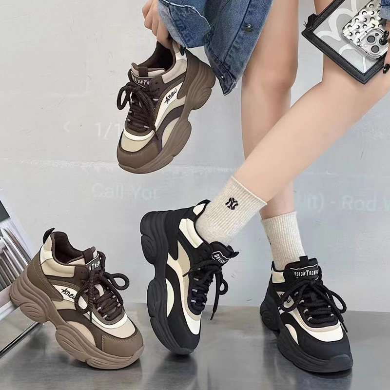 春秋舒适小个子增高显脚运动鞋 女款 圆头防水 厚底老爹鞋 2025新款