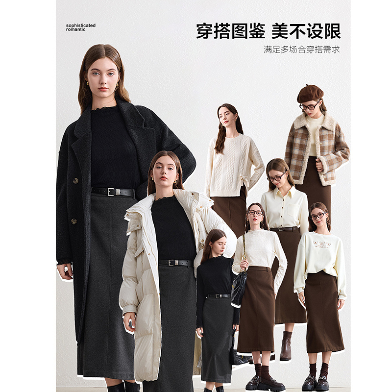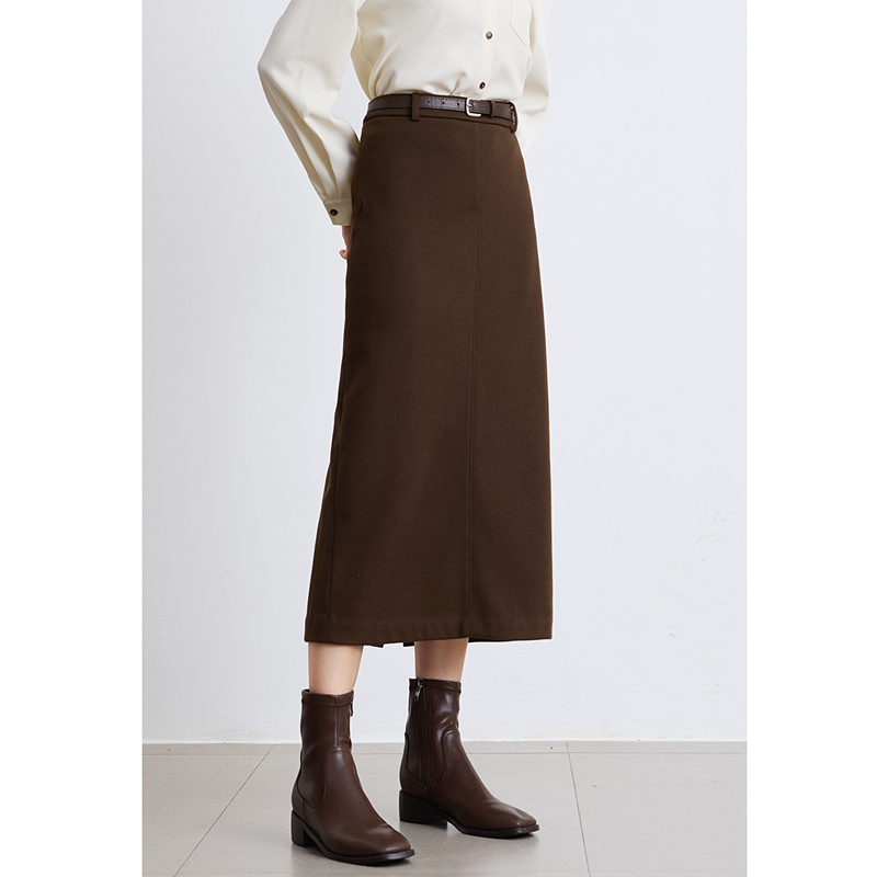 通勤风中长裙 新款 betu百图修身 高腰直筒毛呢半身裙你2025年冬季