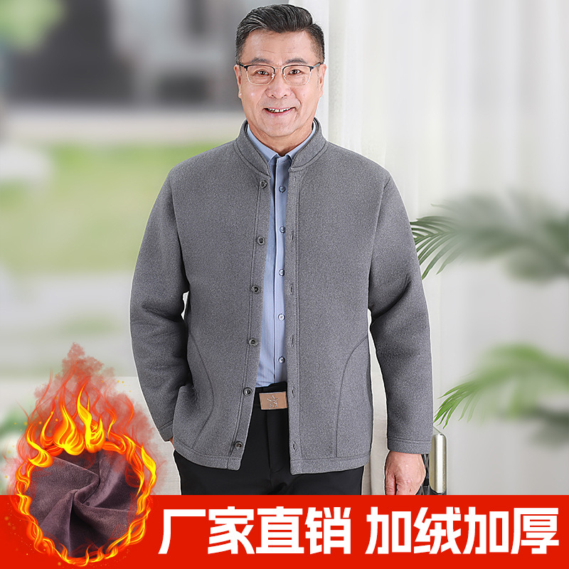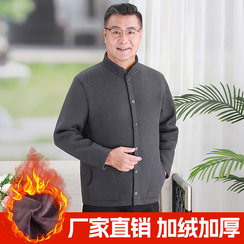保暖内衣外套男老人棉衣爷爷上衣男装 中老年加绒加厚开衫 爸爸冬装