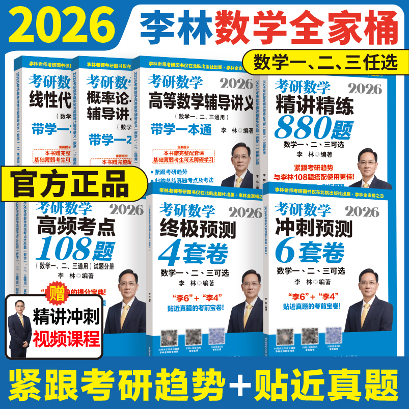 李林880题 数学一数二三26考研数学教材660和李林46套卷六四套卷李永乐武忠祥张宇 李林2026考研数学 高等数学精讲精练880题108题
