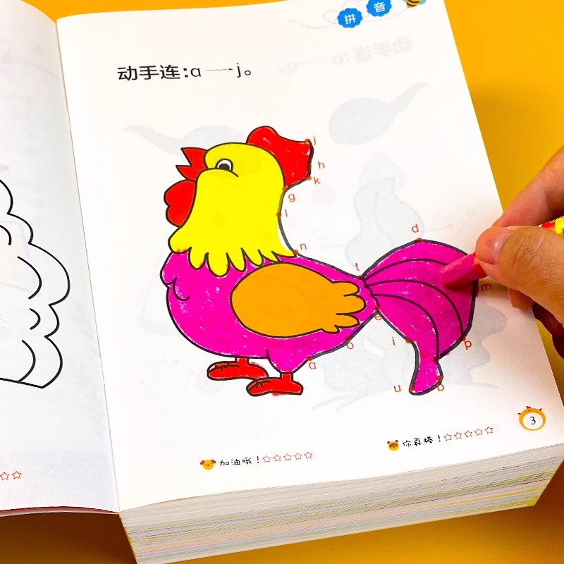 6岁描印4 画画书男女童小孩趣味涂鸦美术填色2 儿童数字拼音连线画初学入门幼儿园宝宝中大班益智涂色绘本幼儿早教启蒙绘画套装