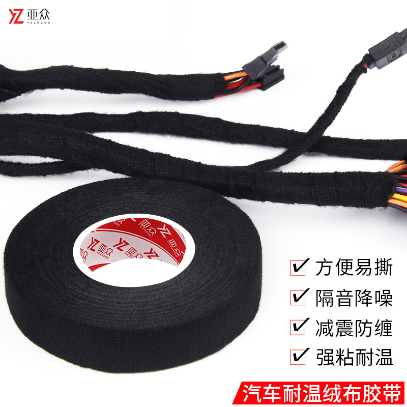 亚众绒布线束胶带汽车发动机机舱线异响耐高温隔音胶布降噪消音捆扎导线缠绕黑胶带