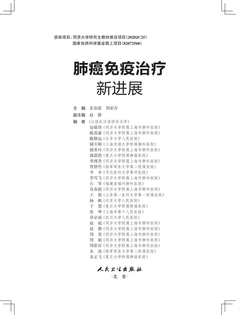 免疫治疗机制 免疫治疗常见不良反应 苏春霞 肺癌免疫治疗新进展 人民卫生出版 基础和临床研究现状和前景 周彩存 社 免疫治疗