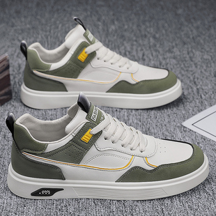 潮流百搭运动小白板鞋 2025新款 休闲耐磨白色皮鞋 男士 秋季 潮鞋 男鞋