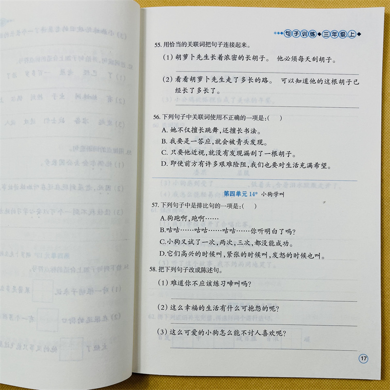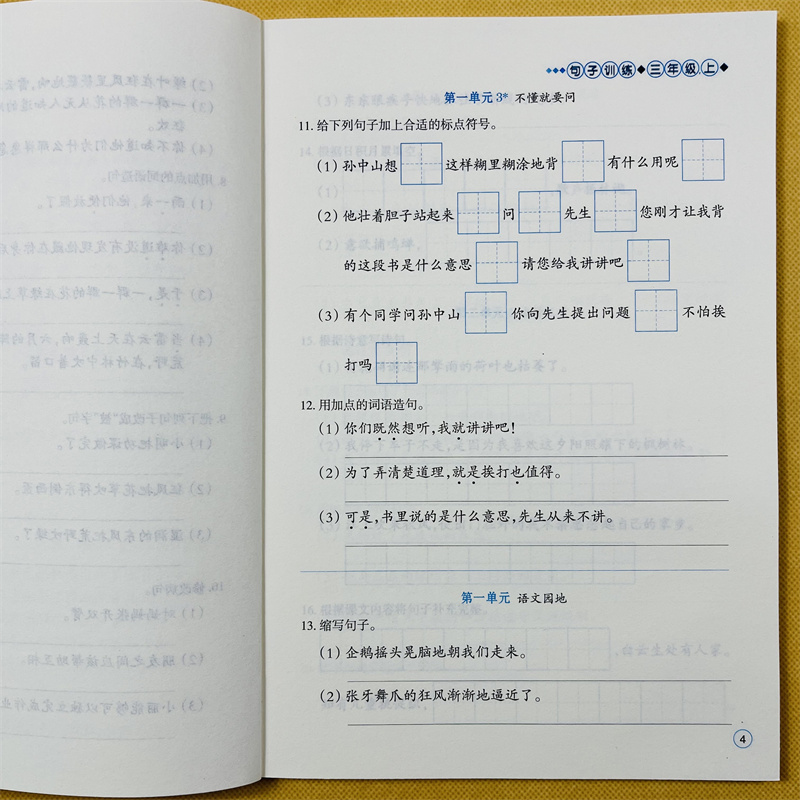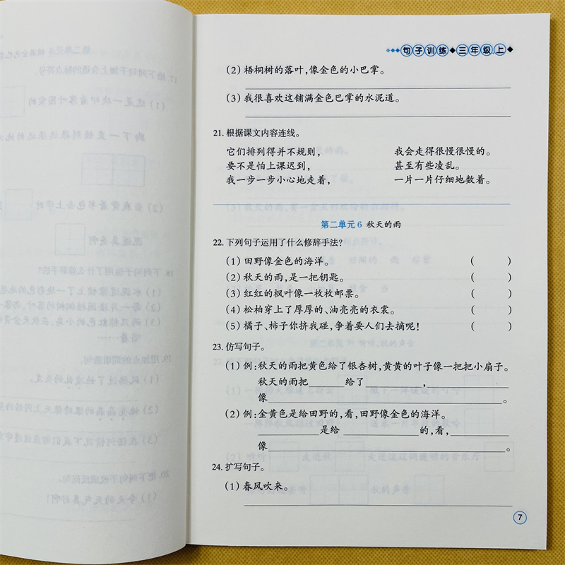 三年级上册句子训练语文部编人教版 3年级上册扩写句子把句子补充完整句子排序加标点默写题 语文造句训练照样子仿写句子课堂课业本