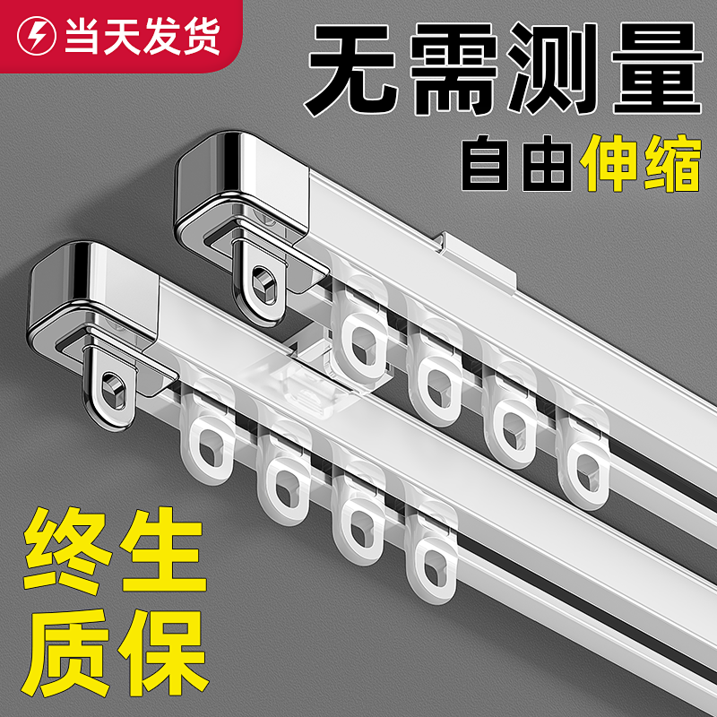 双轨道窗帘滑道一体铝合金静音滑轨伸缩床帘侧装 窗帘盒窗帘杆 顶装