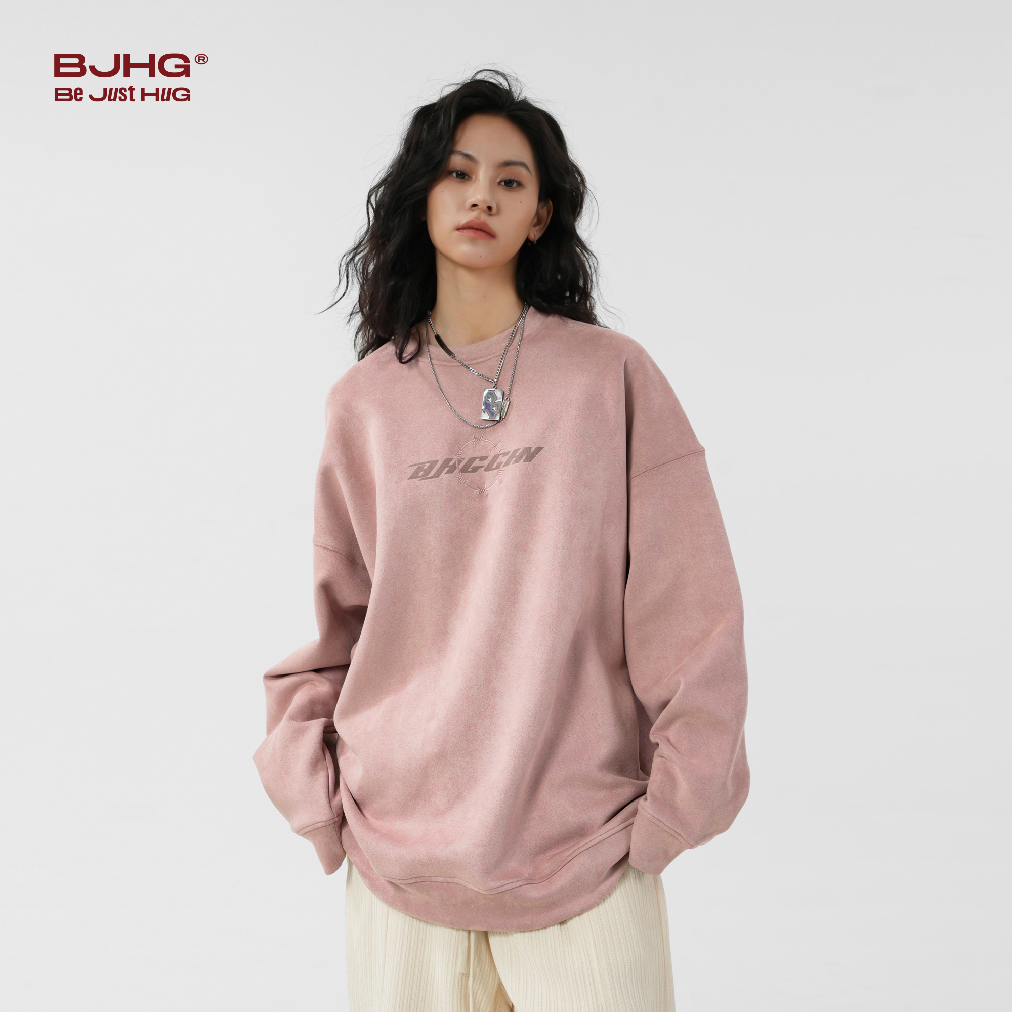 四条杠BF外套潮 套头打底衫 华夫格卫衣男秋冬美式 宽松百搭圆领长袖