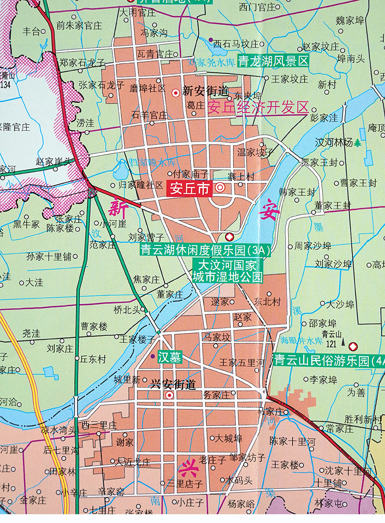 75×52厘米 安丘市地图 安丘市交通旅游图 折叠便携带版 官方直营