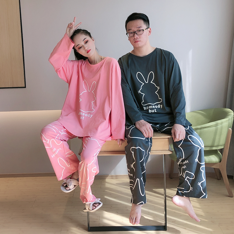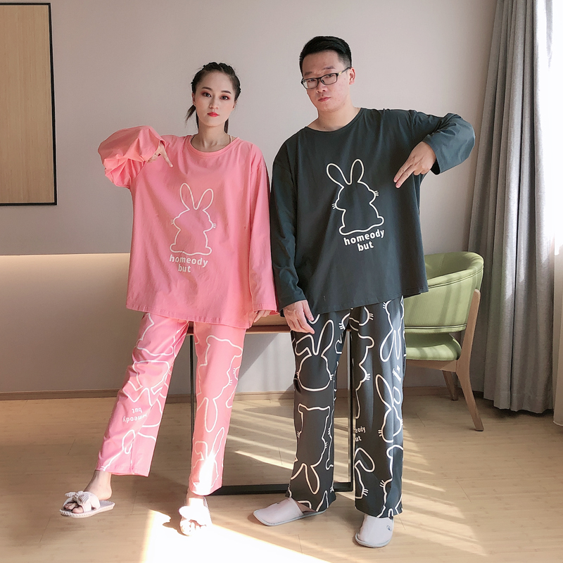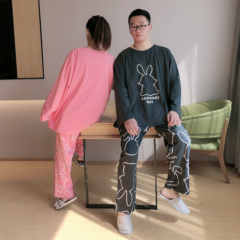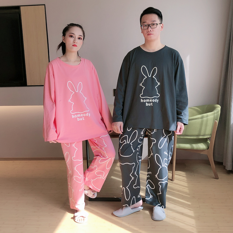 印花圆领家居服套装 春秋大码 情侣睡衣卡通胖MM200斤纯棉长袖 新款