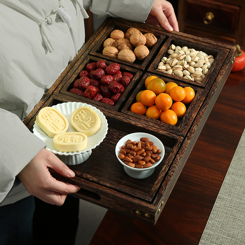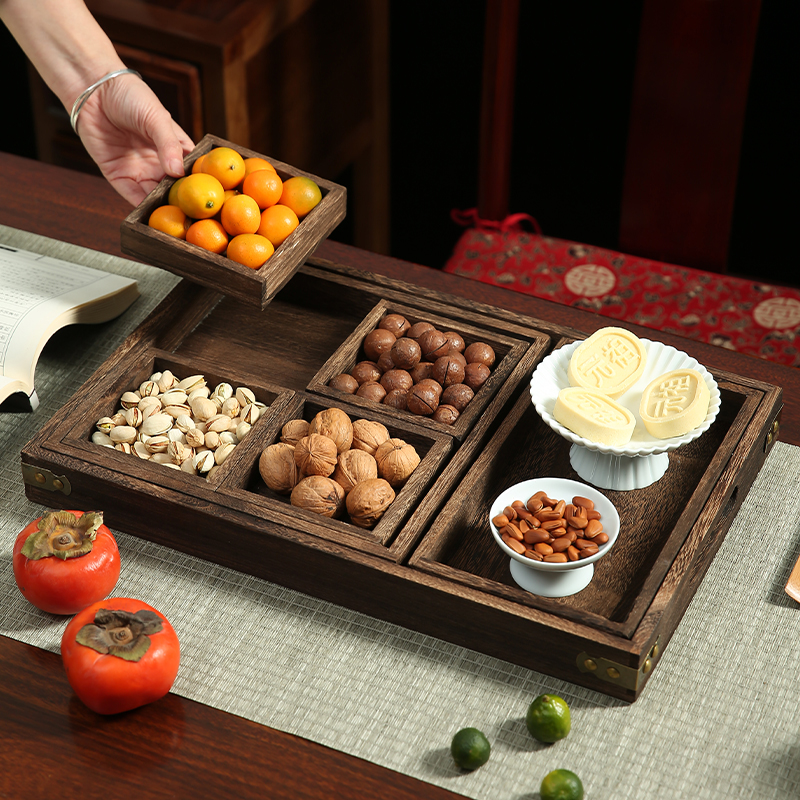 中式 木质托盘点心盘茶点盘精致下午茶餐具水果零食小吃干果糕点碟