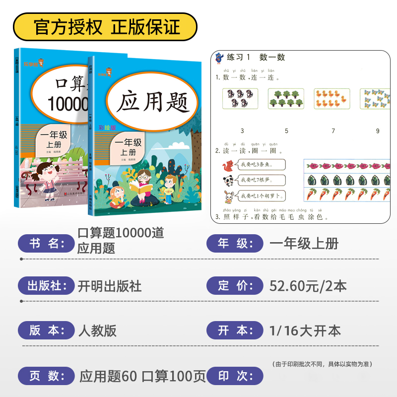 一年级上册口算题10000道应用题数学思维专项训练人教版 小学1上同步每天100道速算天天练大通关10以内20以内100以内加减法练习册
