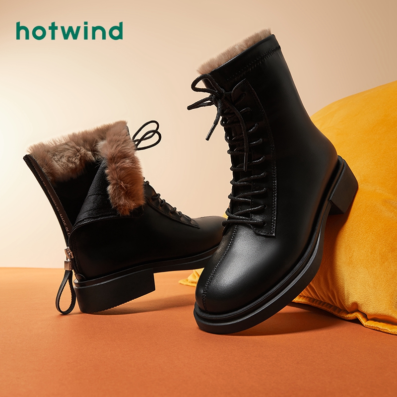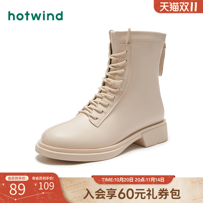 热风春春款 靴 女士ins潮英伦风系带马丁靴休闲百搭时装