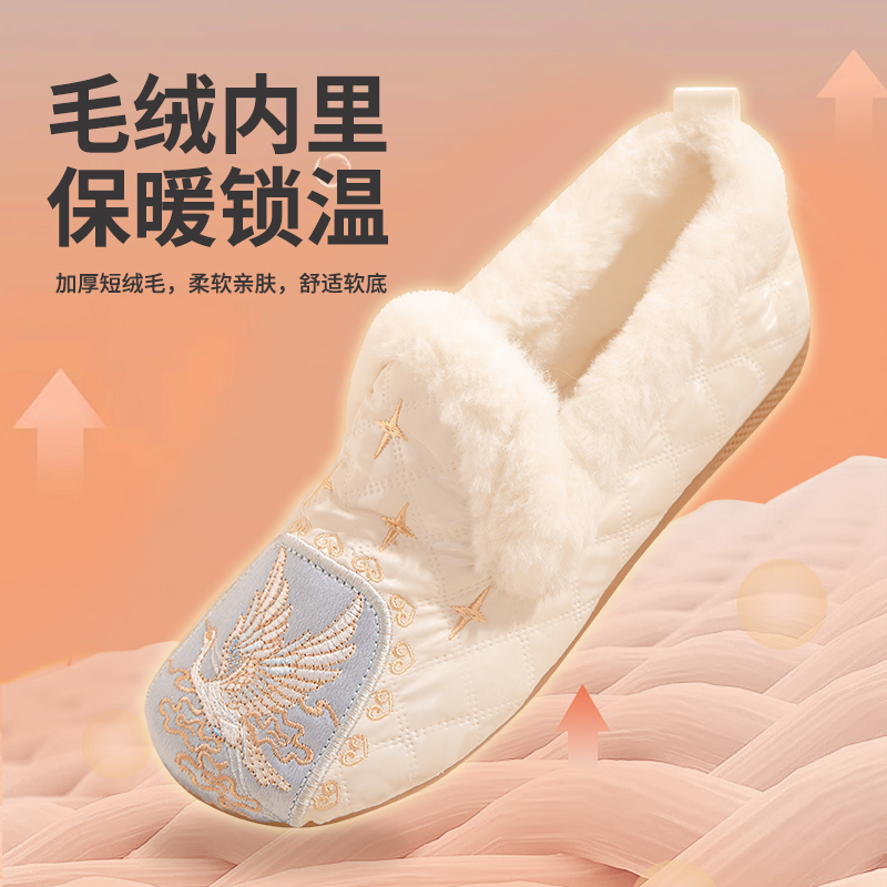 绣花棉鞋 冬季 加绒加厚保暖软底防水防滑毛绒中式 女新款 老北京布鞋