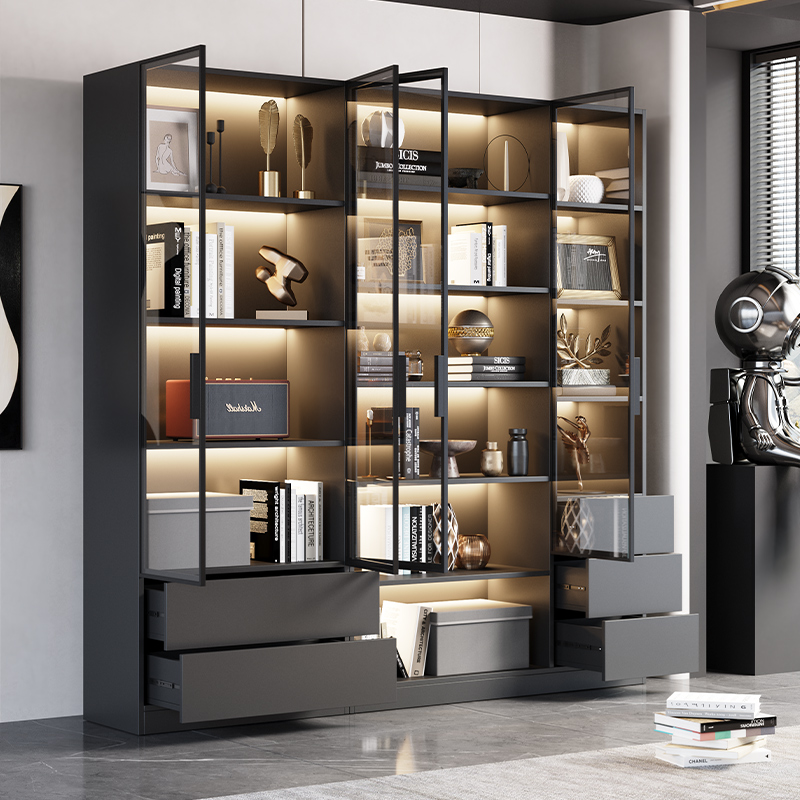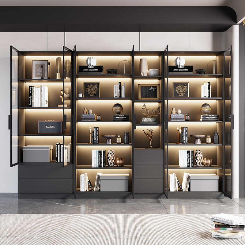 防尘书柜玻璃门展示柜现代简约轻奢定制家用一体整墙组合置物书架
