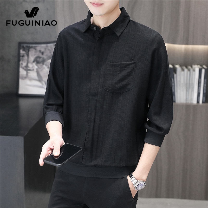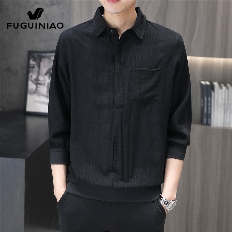 衬衣男士 衬衫 休闲白色衣服2025年夏季 商务短袖 男 新款 富贵鸟七分袖