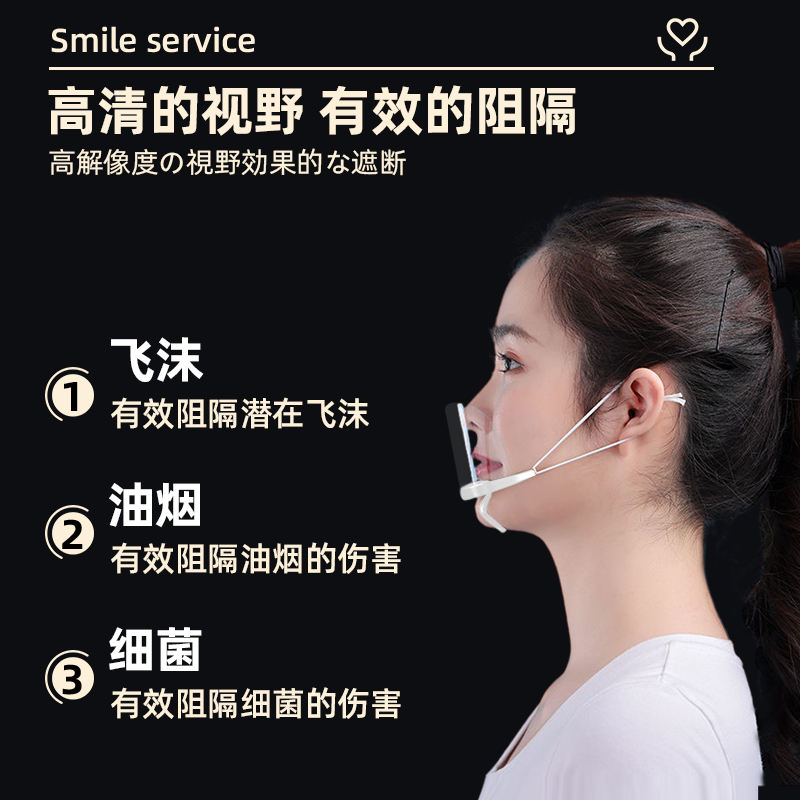 透明口罩餐饮专用食品级厨房厨师塑料防飞沫双面防雾卫生摆摊微笑