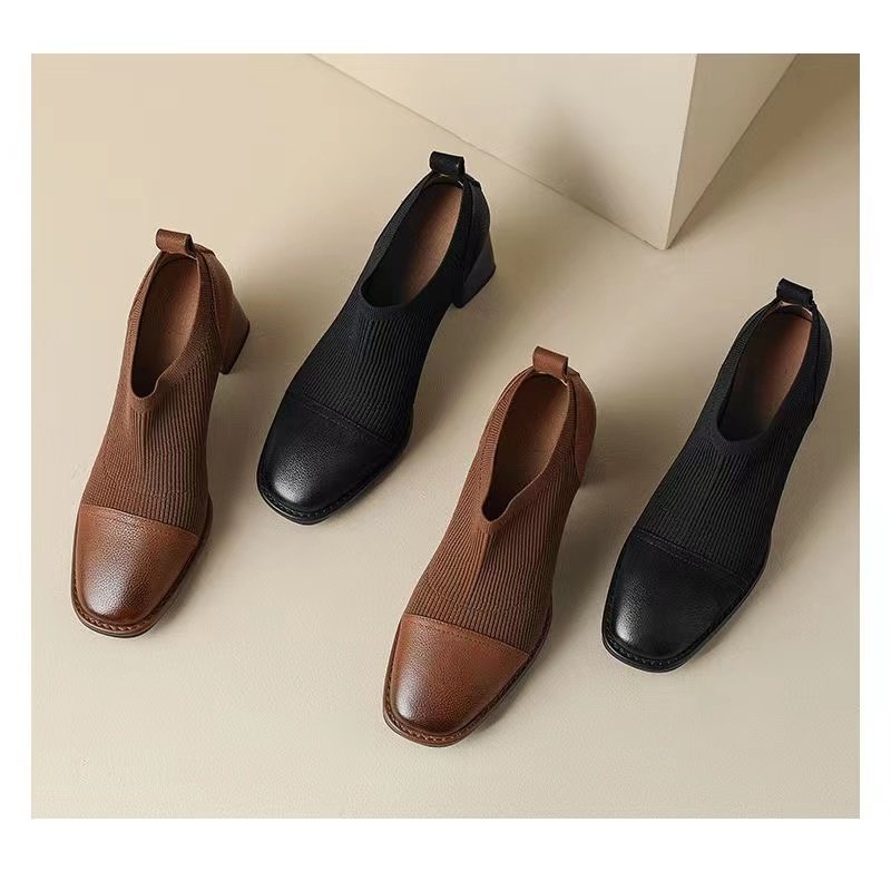 女2025新款 喜婆婆婚宴鞋 浅口高跟鞋 酒红色妈妈鞋 女鞋 华耐粗跟单鞋