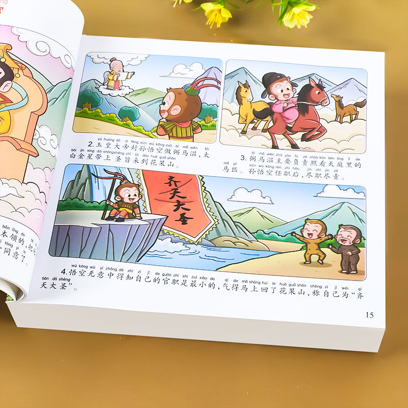 小学生漫画版 全套4册注音版 西游记三国演义水浒传红楼梦绘本漫画书一二三年级连环画课外阅读故事书籍 四大名著连环画正版 儿童版