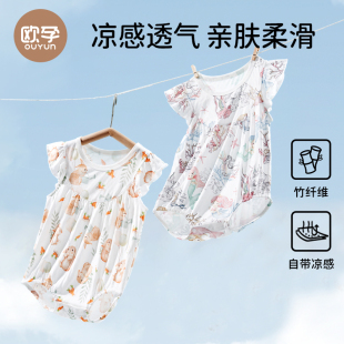 连体衣女宝宝三角哈衣爬服 新生儿无袖 欧孕婴儿衣服包屁衣夏季 薄款