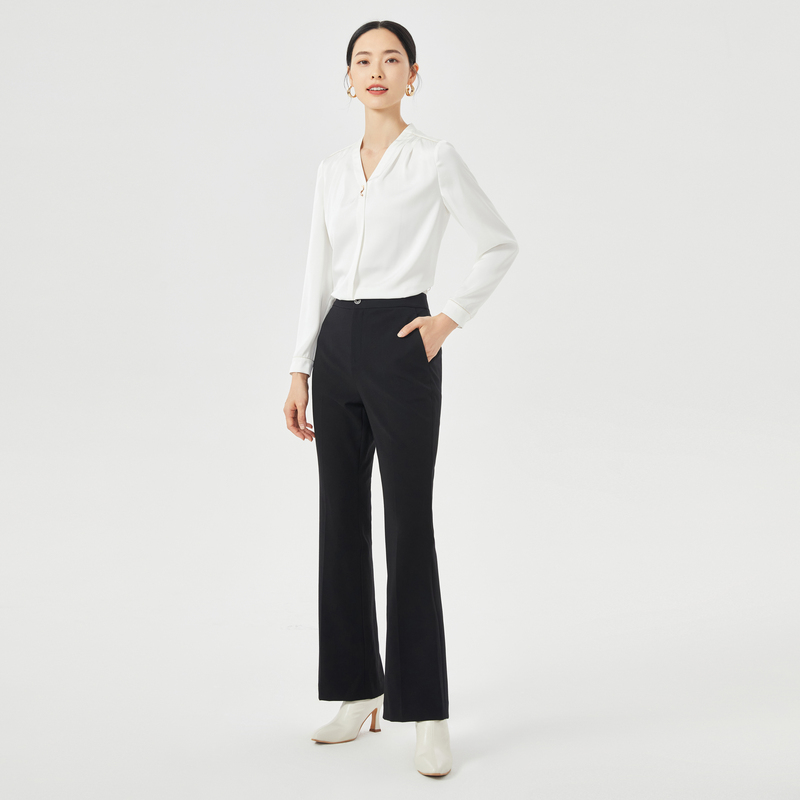 女2025早秋通勤气质阔腿裤 NAERSI 娜尔思简约直筒黑色休闲裤